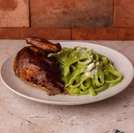 Spaguetti al Pesto con 1/4 Pollo
