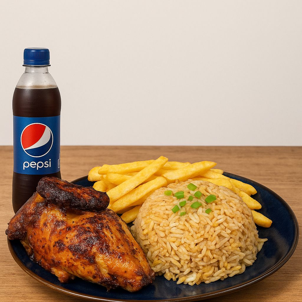 1 Pollo con papas + porción de Tequeños con queso + Gaseosa Pepsi de 2 Litros