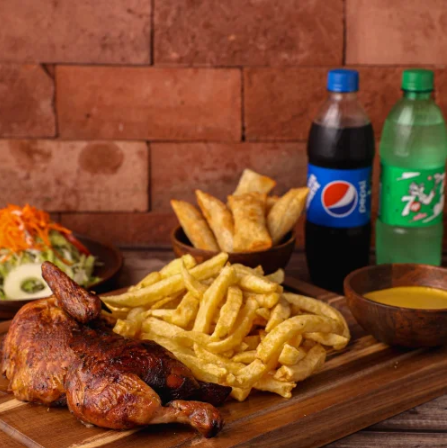 1/2 Pollo con papas + Ensalada + Tequeños + Bebida