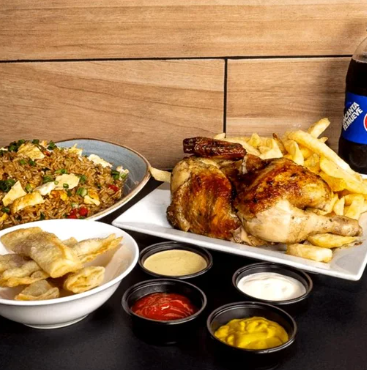 ¡Prepárate para enfrentar al verdadero Mostrazo!. Un jugoso 1/4 de pollo a la brasa, dorado a la perfección, acompañado de papas crocantes y una porción generosa de arroz chaufa, salteado al wok con sabor oriental y criollo. Ideal para calmar el hambre más feroz. ¡Pídelo y conquista tu antojo!.