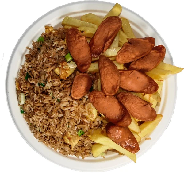 Arroz Chaufa con chorizo, pollo y cecina.