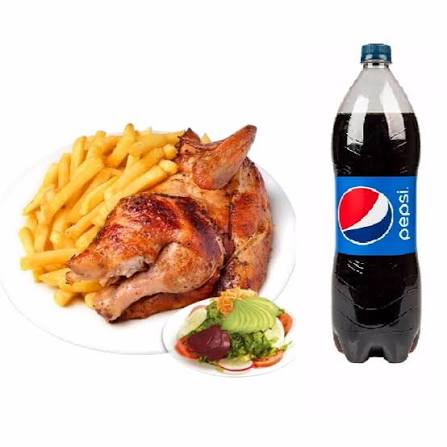 1/2 pollo + papas + ensalada + cremas + Pepsi 1.lt