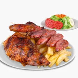 1/4 pollo + chorizo + papas + ensalada + cremas