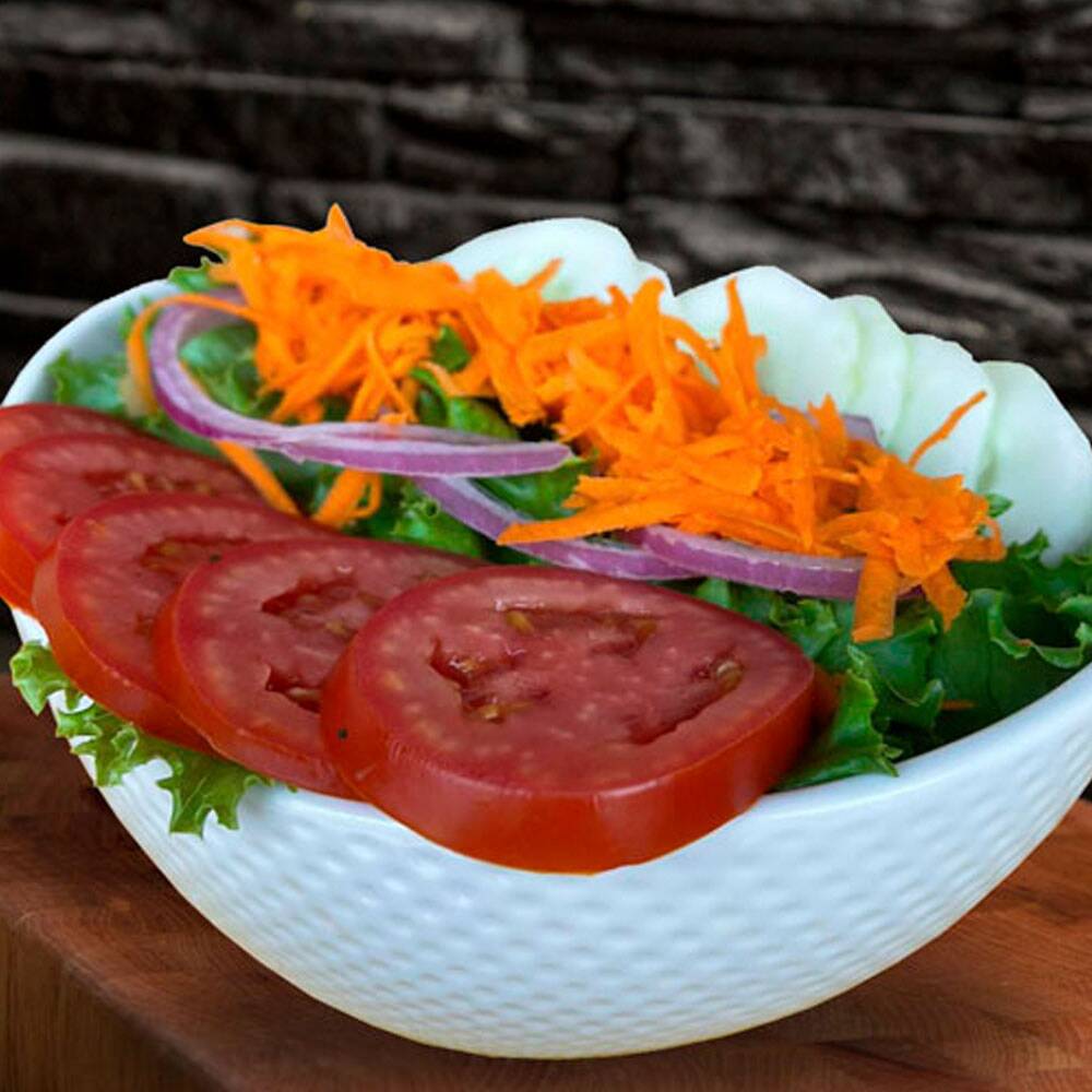 Ideal para acompañar nuestro cuarto de pollo a la brasa, compuesto por lechuga crespa, pepinos y tomate en rodajas, aros de cebolla, zanahoria rallada y nuestra nueva y rica vinagreta Pollívoro a base de queso parmesano y albahaca.