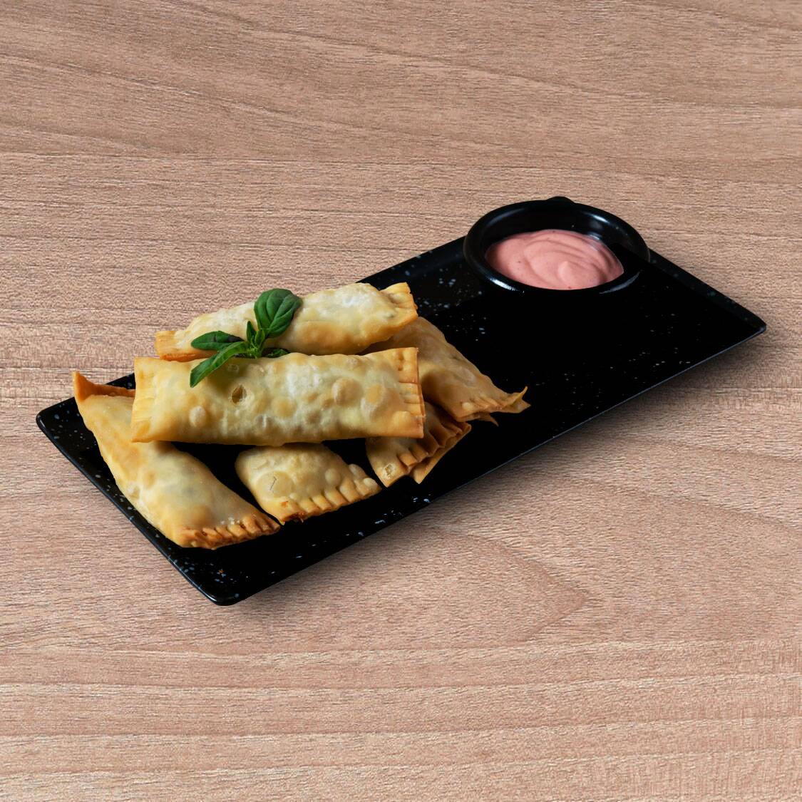 6 Crocantes tequeños rellenos de pollo a la brasa, queso Edam y hierbas de la abuela, acompañados de salsa golf