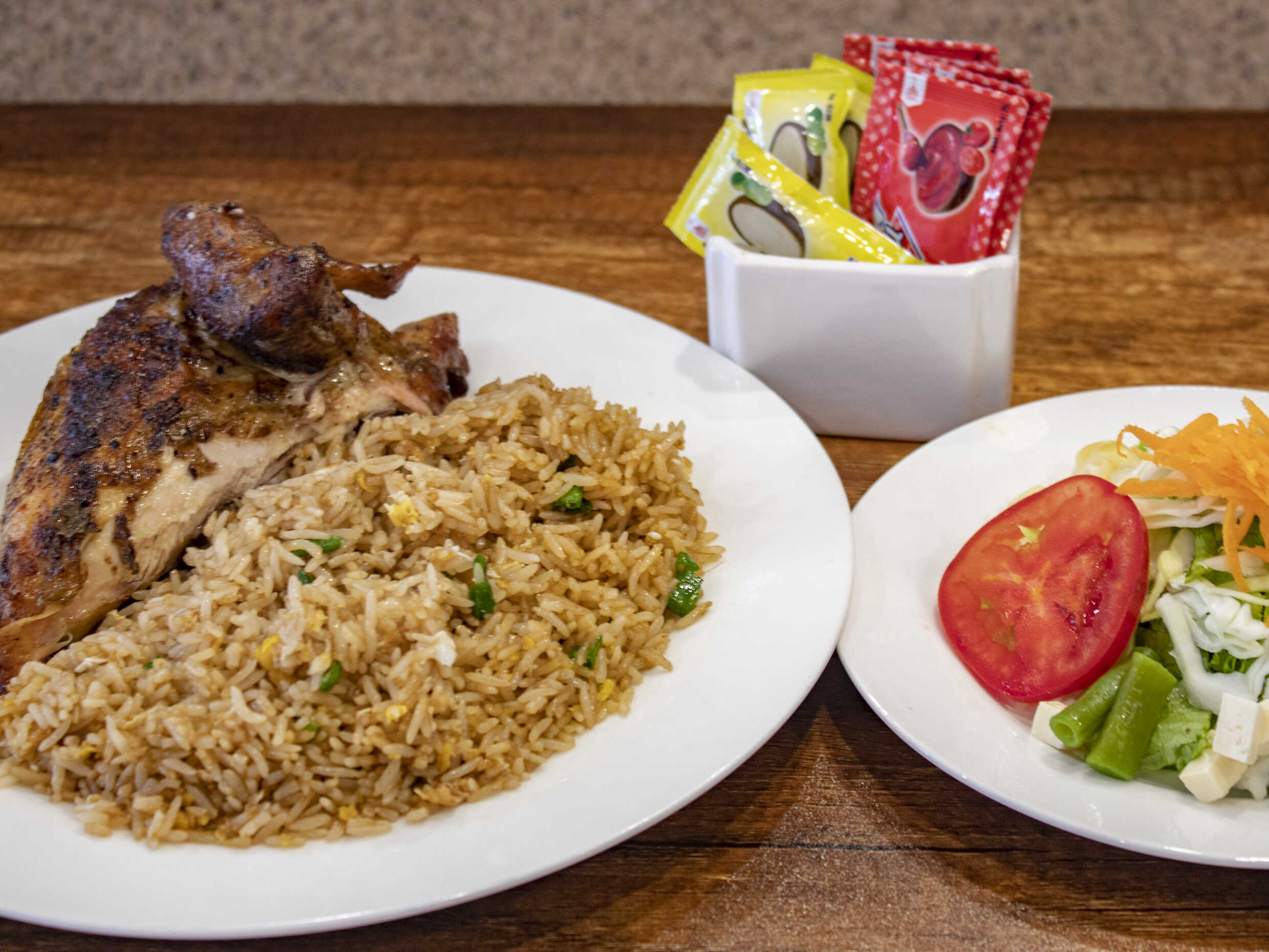 1/4 Pollo a la brasa con arroz chaufa.