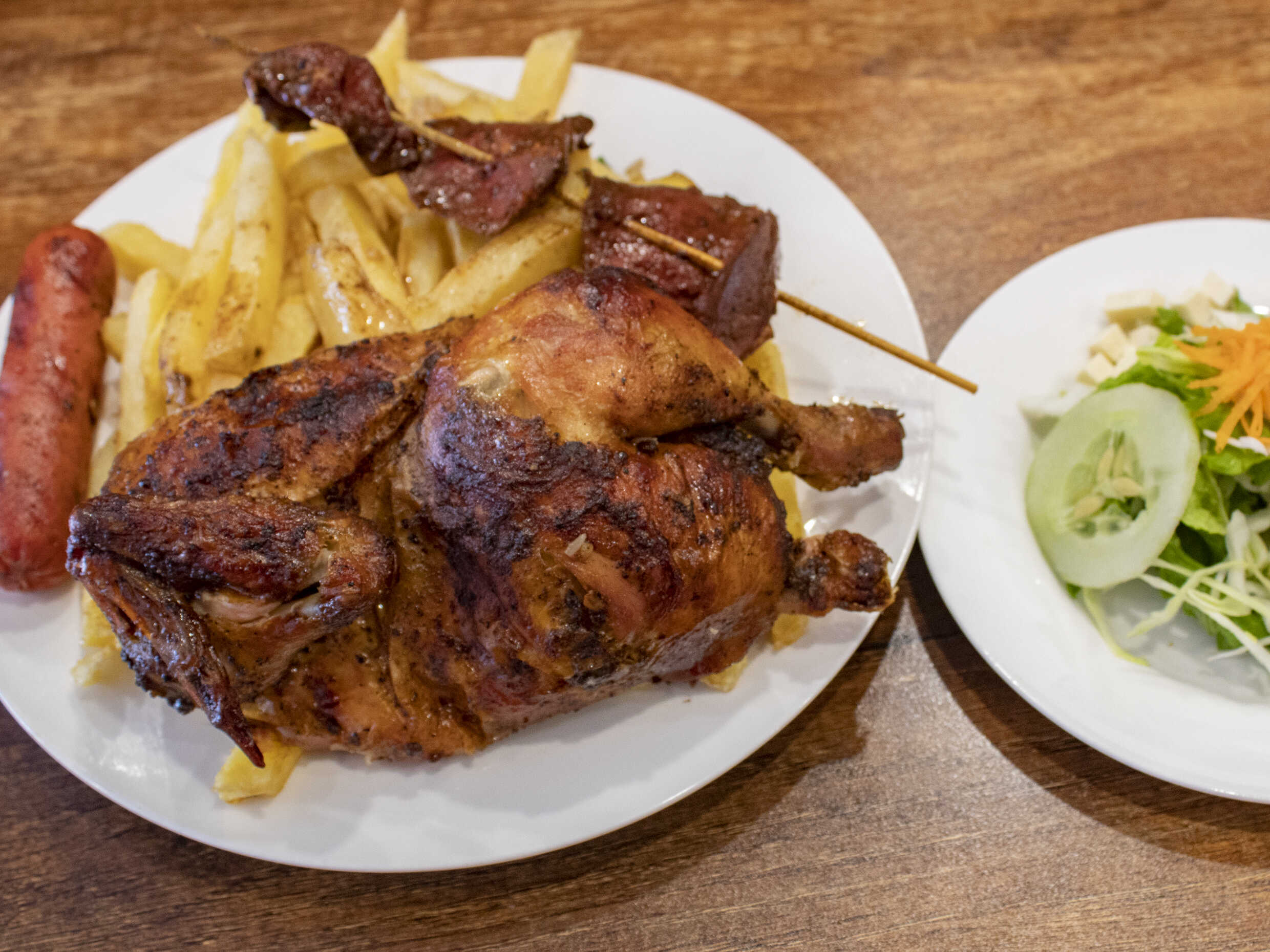 Combo 1/2 Pollo más Anticucho y Chorizo