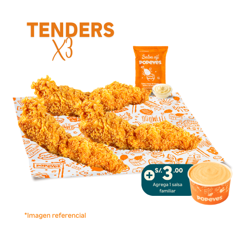 3 tenders de pechuga crispy + 1 papa cajun regular + 1 salsa familiar 3 oz