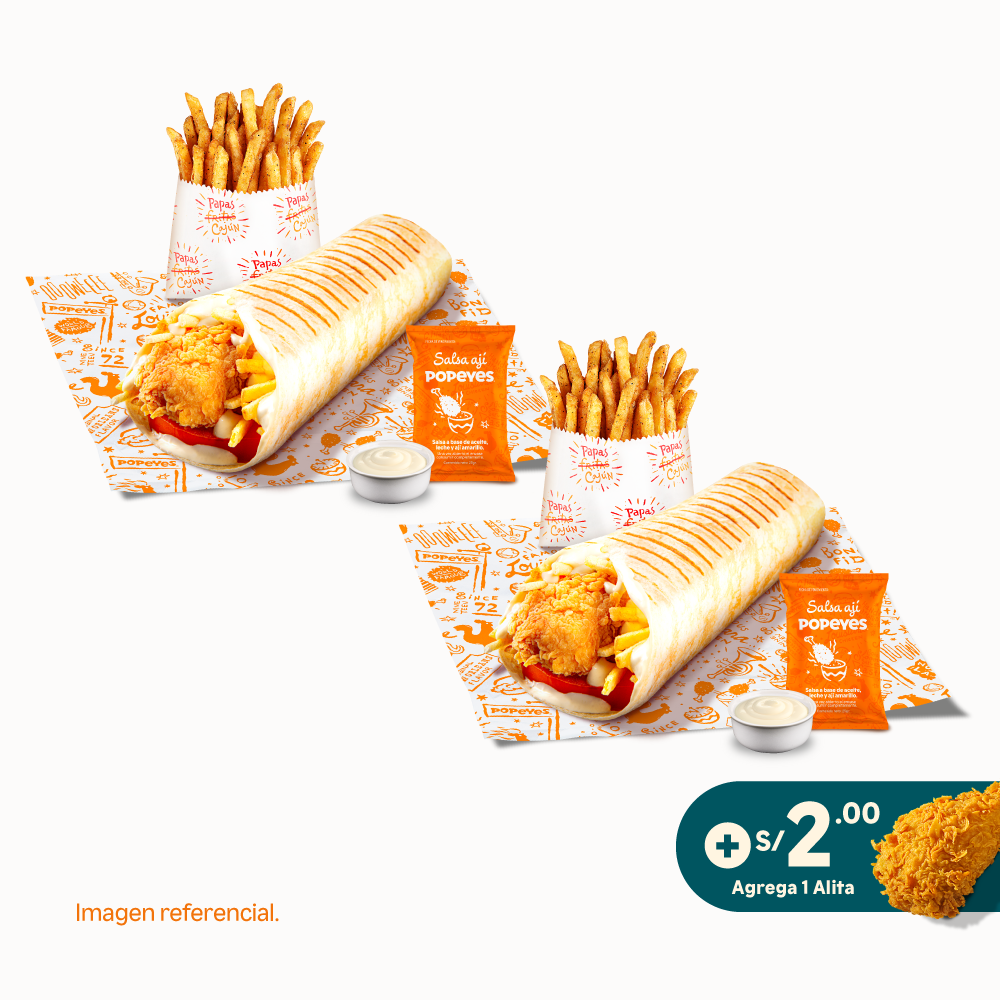 2 chicken roll (Tortilla pequeña con 1 tender, papas al hilo, tomate y mayonesa) + 2 papa cajun regular