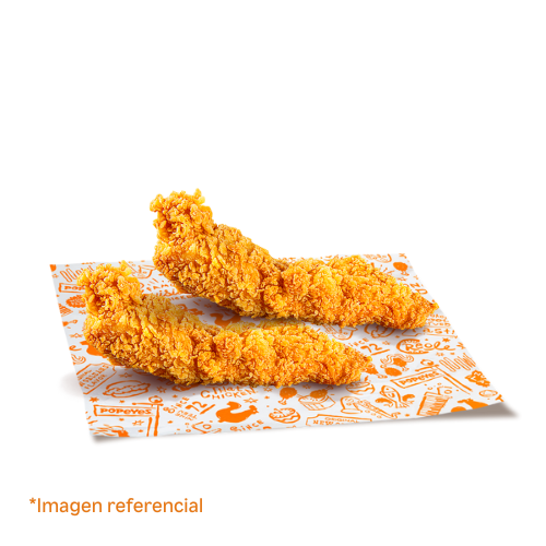 Tiras de pechuga de pollo crujiente empanizadas en nuestra receta secreta. Disfruta +3 soles con tu salsa preferida.