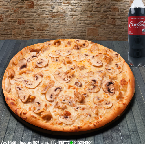 Pizza Champiñones + Gaseosa de 1.5 Lt.