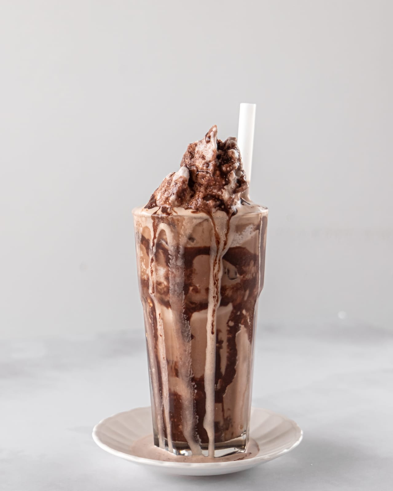 nuestro protein frappe, pero con proteína Whey, sabor chocolate.