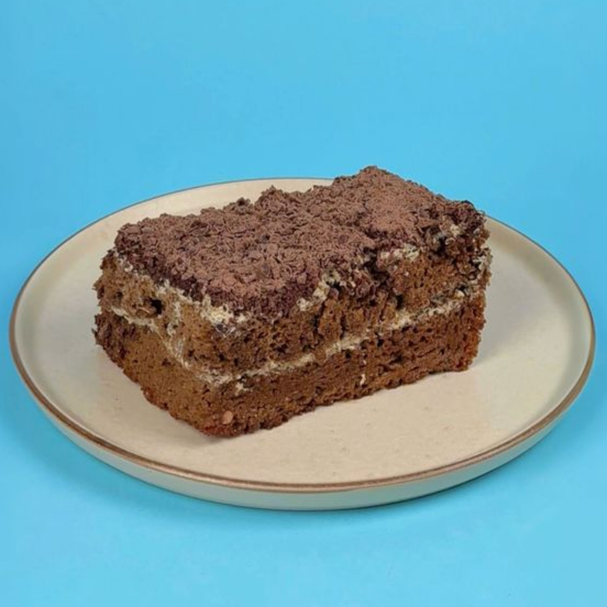 Brownie a base de huevo, cacao en polvo, stevia, avena y castañas.