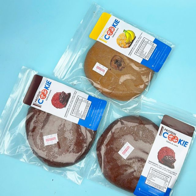 Galleta de whey protein, panela, avena, claras de huevo y stevia. Sabor a elegir en Vainilla, Chocolate o Plátano.