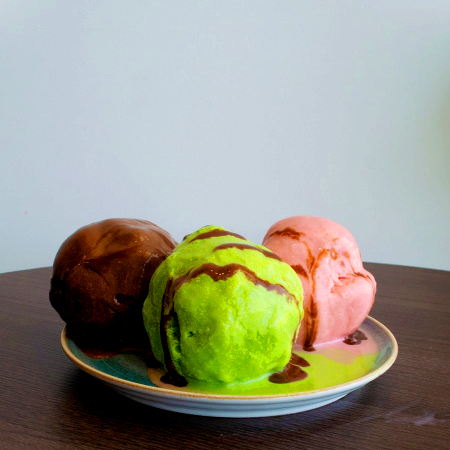 Pide nuestro delicioso helado artesanal proteico en bola de tu sabor favorito. Están hechos con proteína aislada de suero de leche y leche descremada sin lactosa.