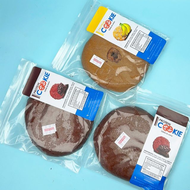 Galleta de whey protein, panela, avena, claras de huevo y stevia.