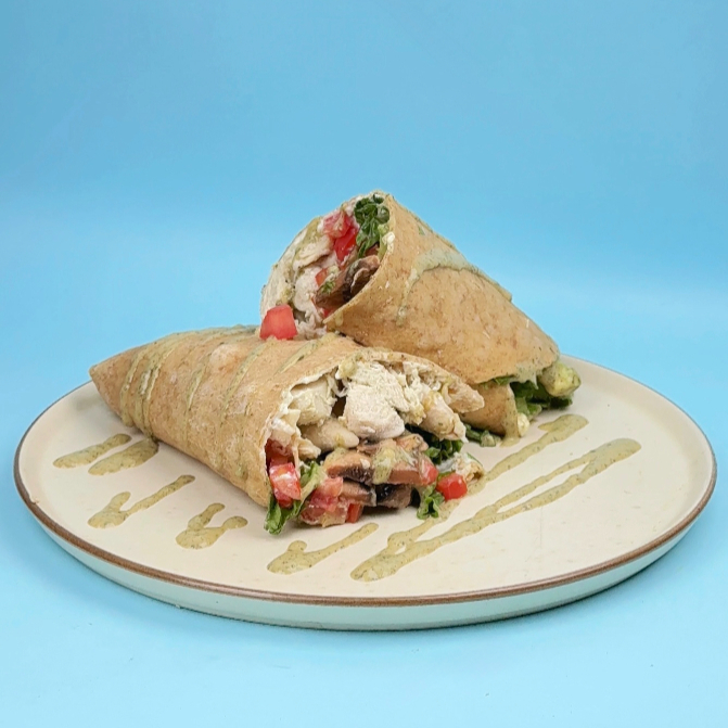 150 gr de Pollo a la plancha en trozos, lechuga, palta, tomate, champiñones, queso crema light, envuelto en un delicioso y contundente wrap.