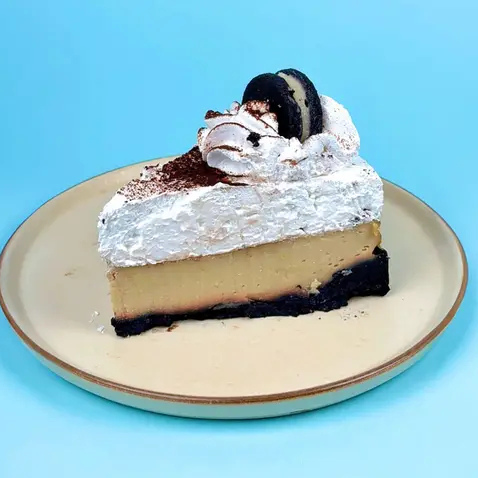 Deliciosa torta a base de avena, cacao orgánico, chantilly fit, mantequilla de maní y proteína.