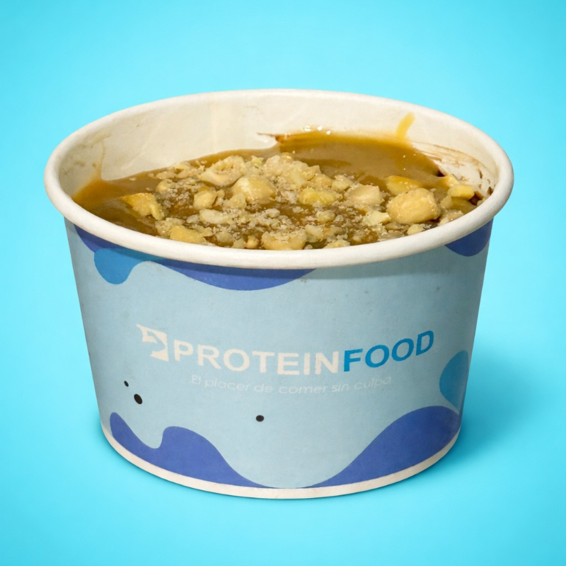 El preferido de muchos, nuestro frappe con crema proteica sabor maní, con nibs de cacao y hielo.