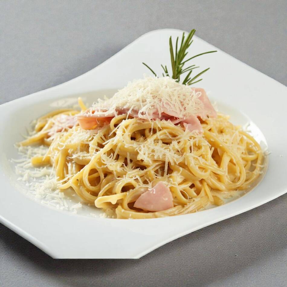 Fideos fetuccini acompañado de su salsa a lo alfredo especial de la casa.