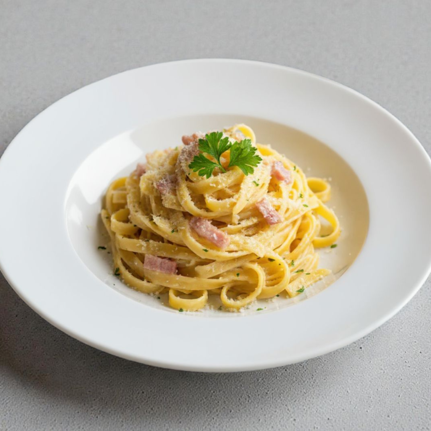 Fideos fetuccini acompañado de su salsa a lo alfredo especial de la casa.