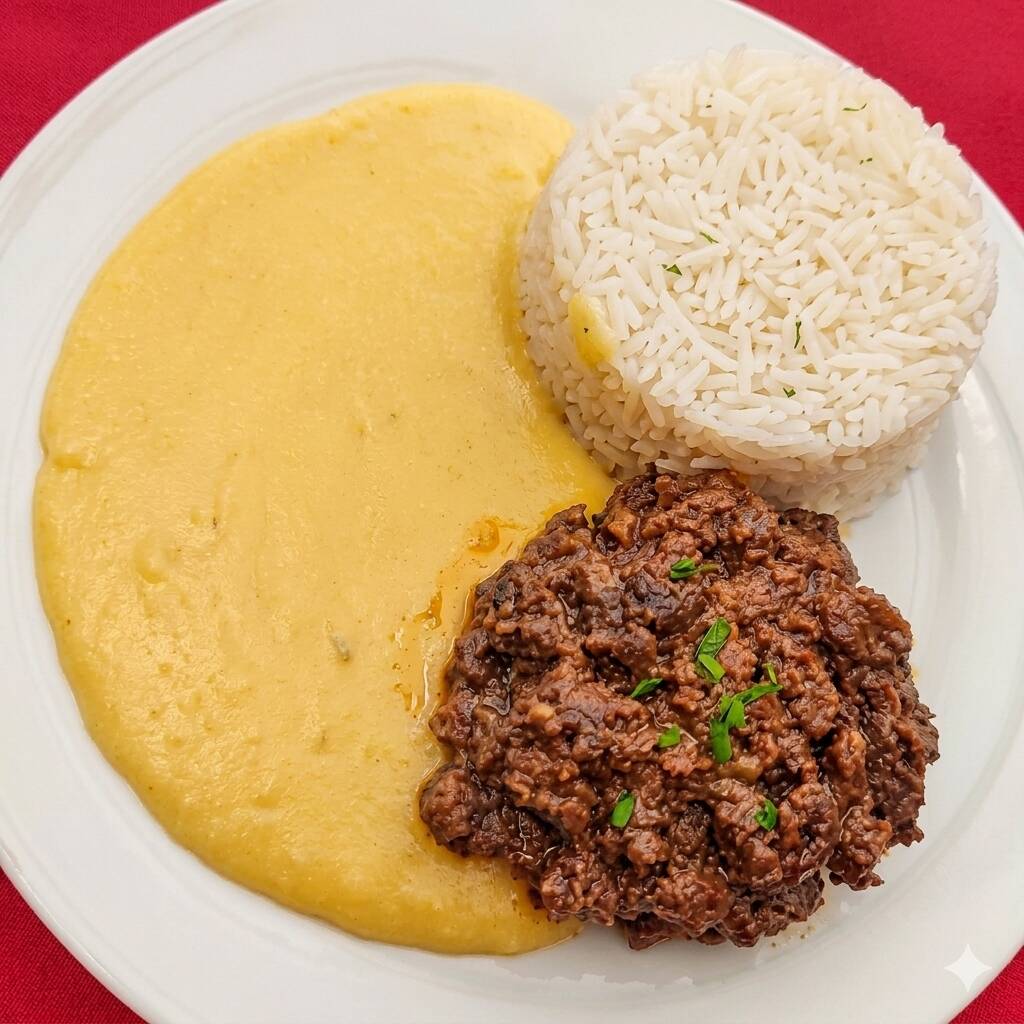 Puré con arroz, hamburguesa de carne de res (120 gr.).
