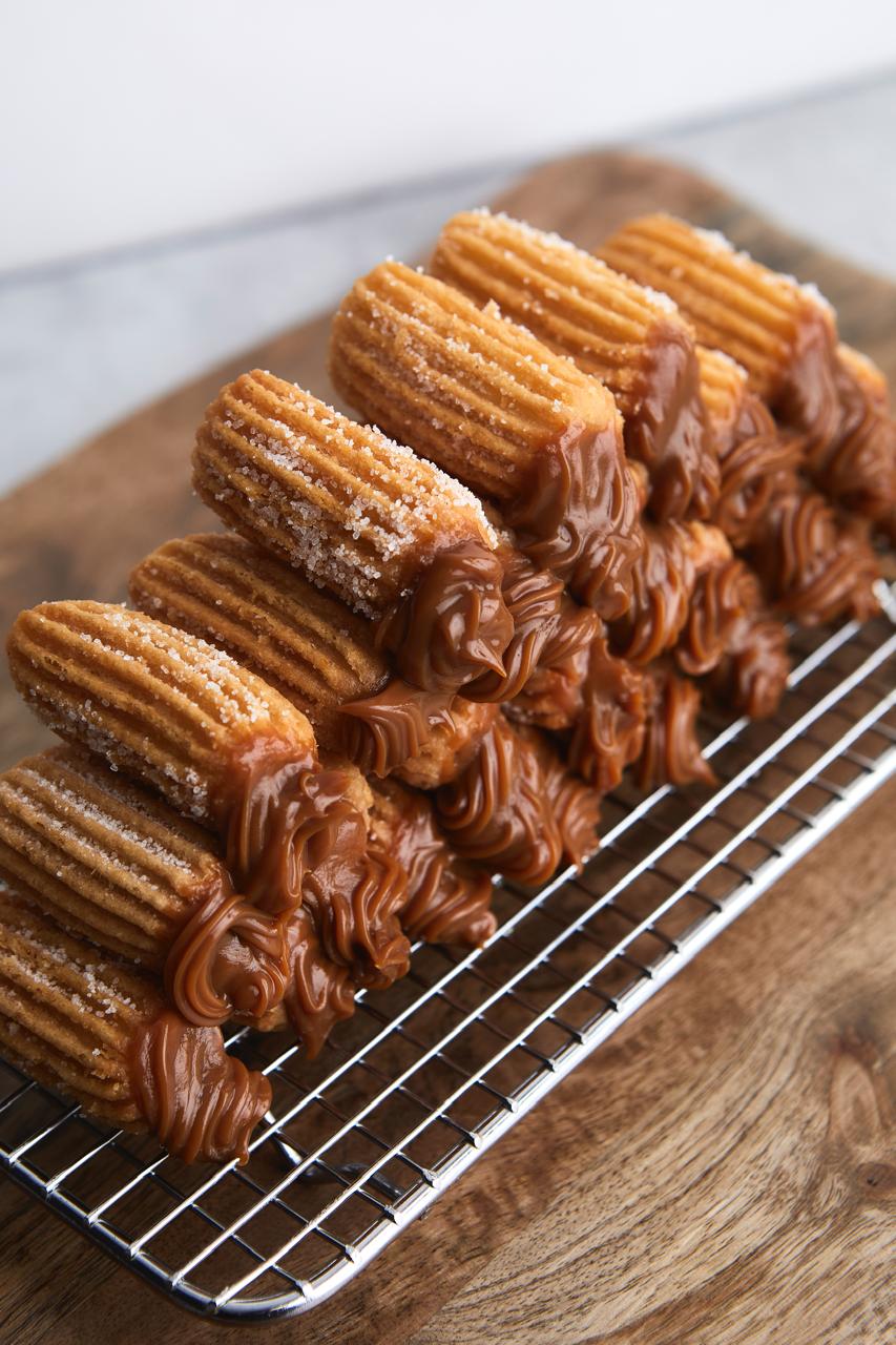 Disfruta 6 churros rellenos recién hechos y llévate 5 glaseados gratis.
