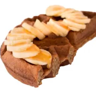 Masa a base de avena, huevo, leche de soya, chía, plátano, anís y estevia, con topping de plátano y miel.