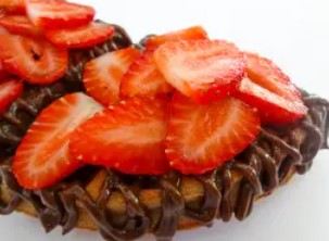 Waffle 2 uds, crema pastelera, chocolate y manjar.