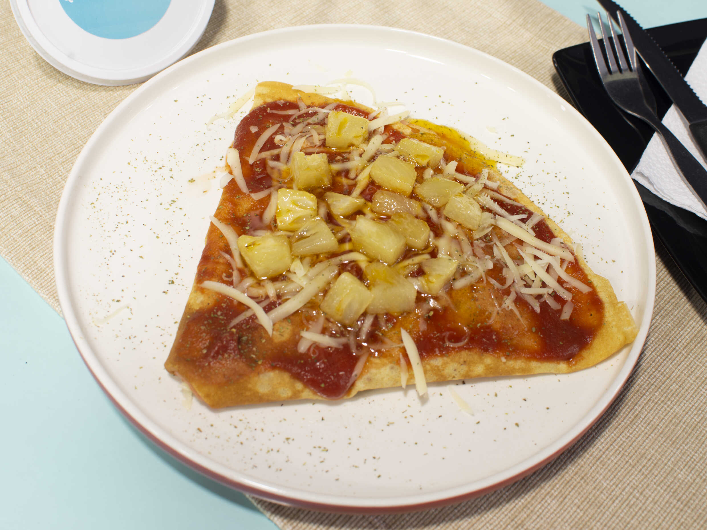 Salsa de tomate, jamón ingles, queso mozzarella, piña y orégano.