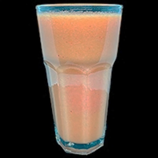 yogur con fresa, piña, plátano, arándanos y granola, miel y algarrobina