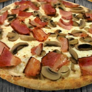 8 Porciones, incluye salsa blanca, mozzarella, tocino y champiñones.