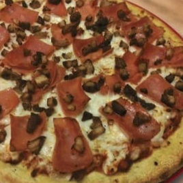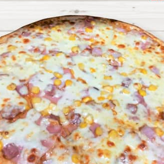 4 Porciones, incluye pomarola, mozzarella, jamón, tocino y maíz amarillo.