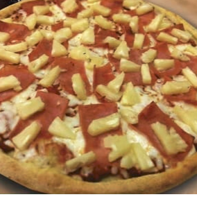 4 Porciones, incluye pomarola, mozzarella, jamón, piña y cabanossi.