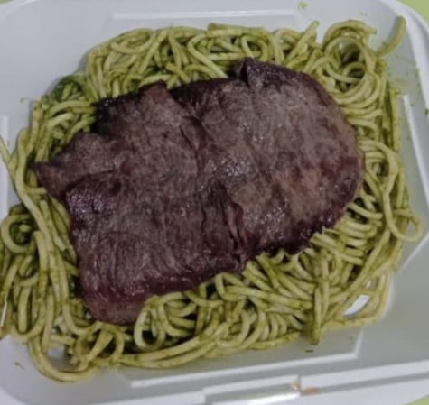 Tallarines Verdes con Bistec + Jugo de Piña 355 Ml