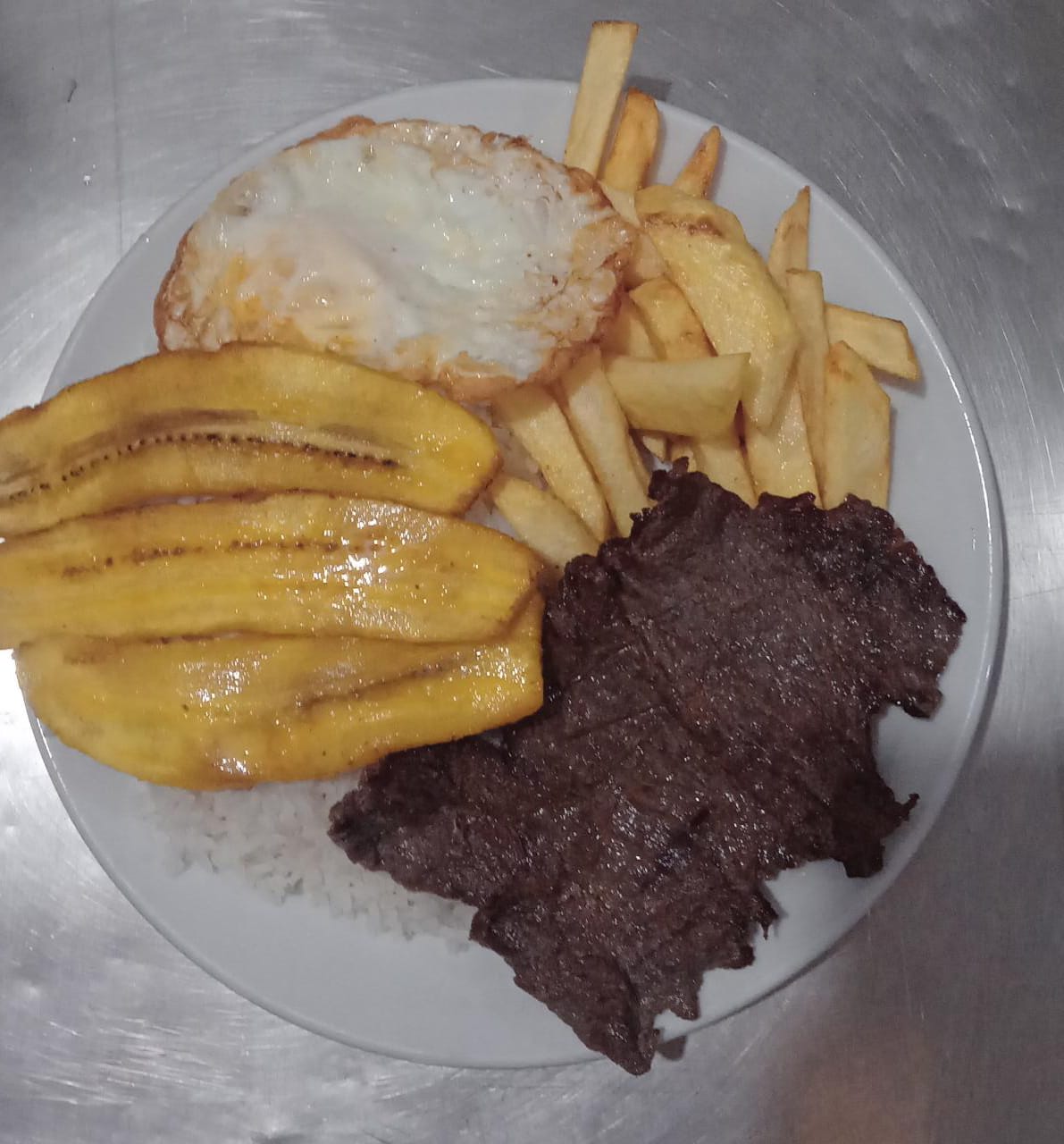 Bistec a lo Pobre*1 + Jugo de piña 355 Ml*1