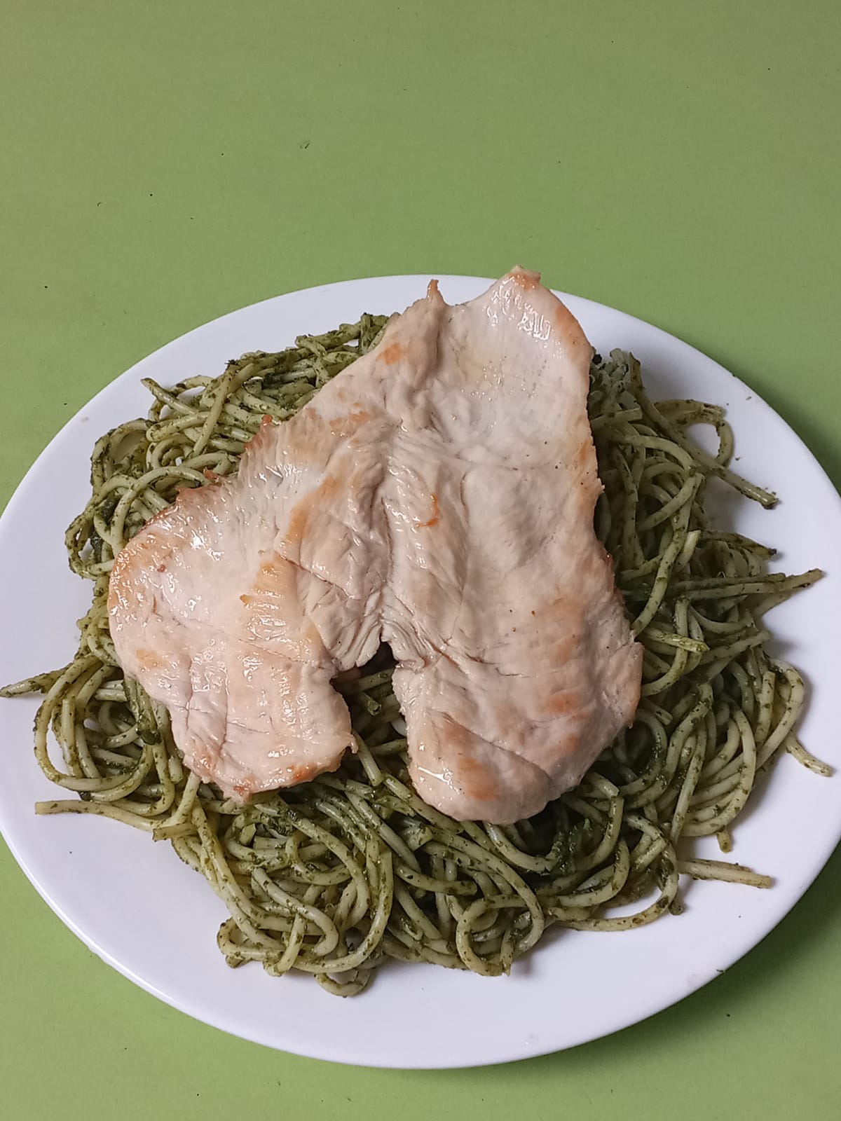 Tallarín Verde con Filete de Pollo + Jugo Papaya