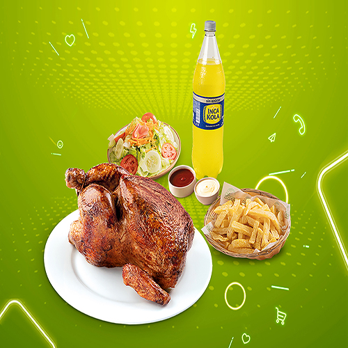 1 Pollo + Papas Fritas + Ensalada Clásica + Salsa + Chicha Morada 2L