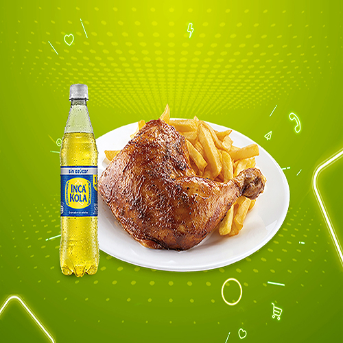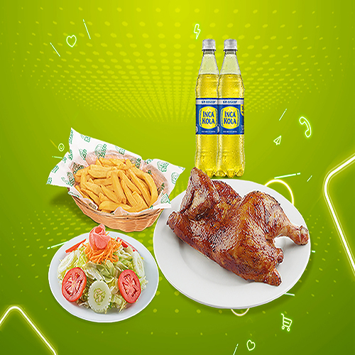 1/2 Pollo + Papas + Ensalada + 2 Gaseosas Personales