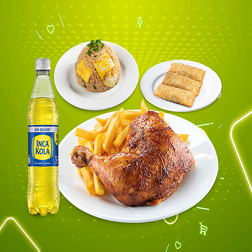 1/4 Pollo A La Brasa + Papas + Arroz Chaufa + Gaseosa