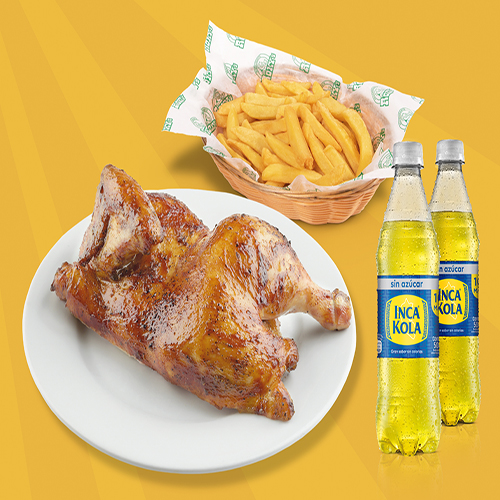 1/2 Pollo + Papas + Ensalada + 2 Gaseosas Personales
