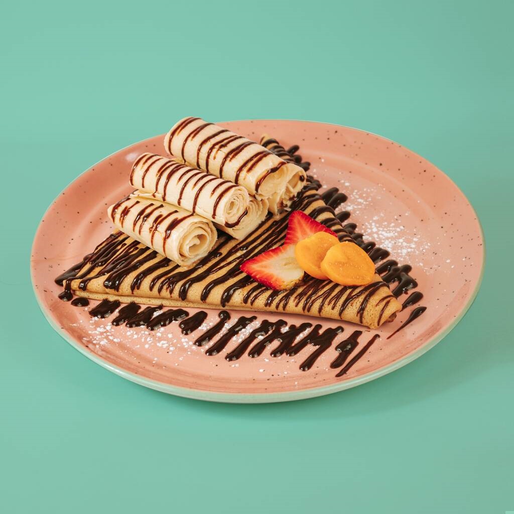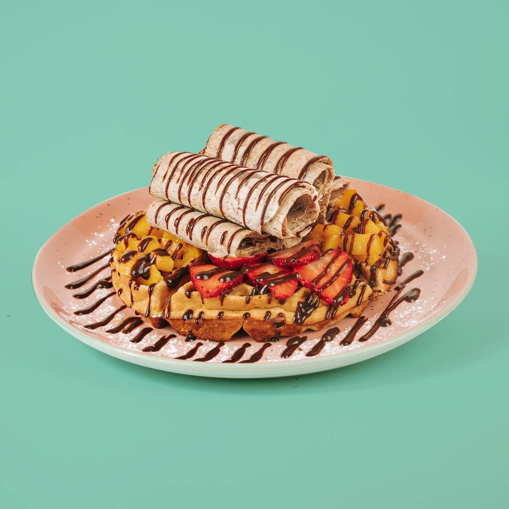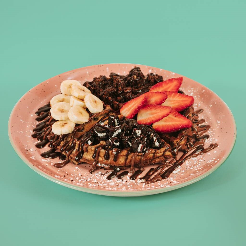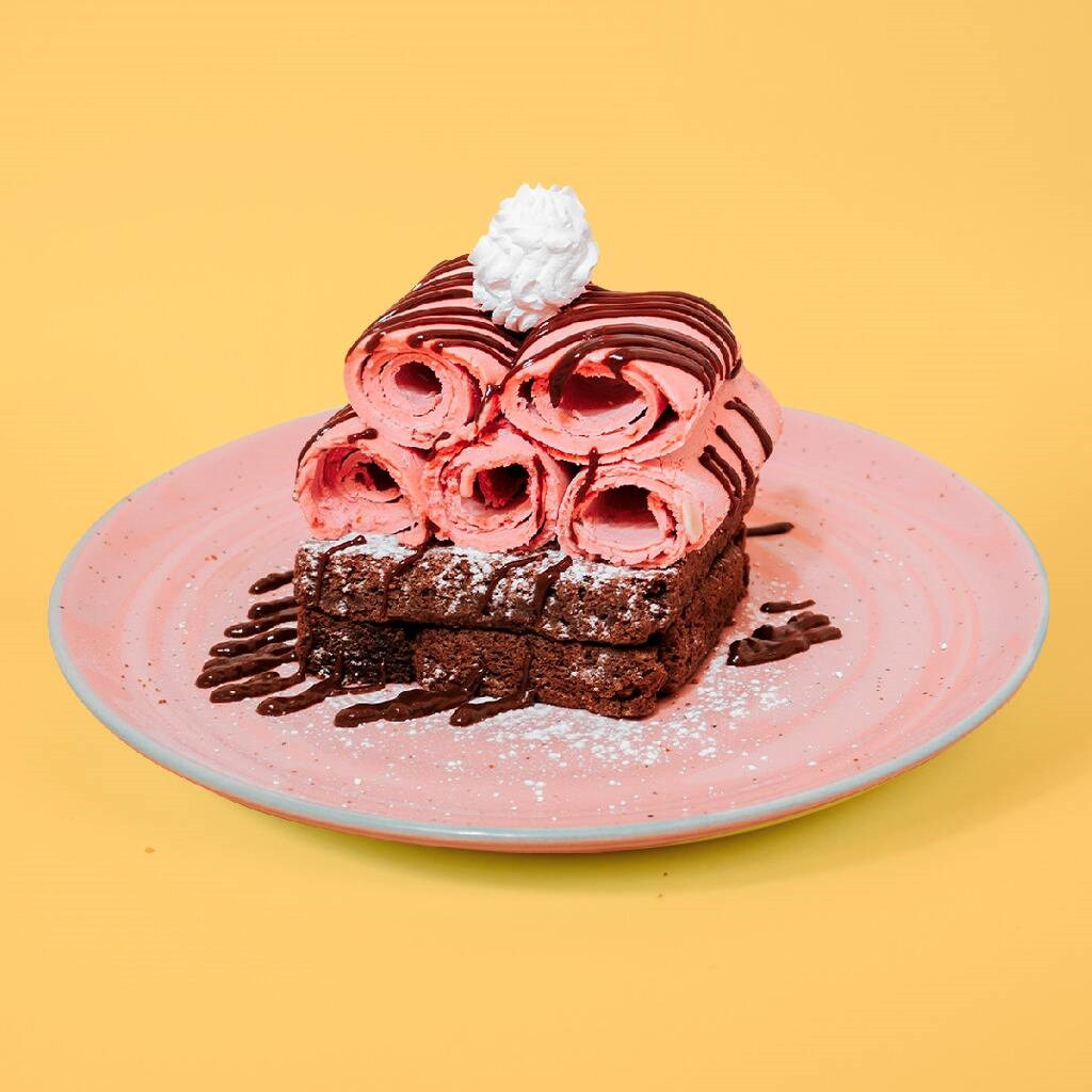 Brownie de chocolate, 1 sabor de helado y 1 jalea.