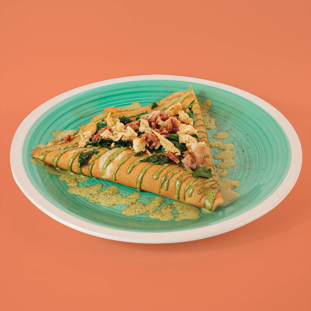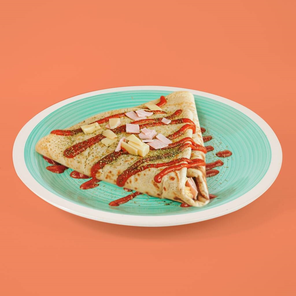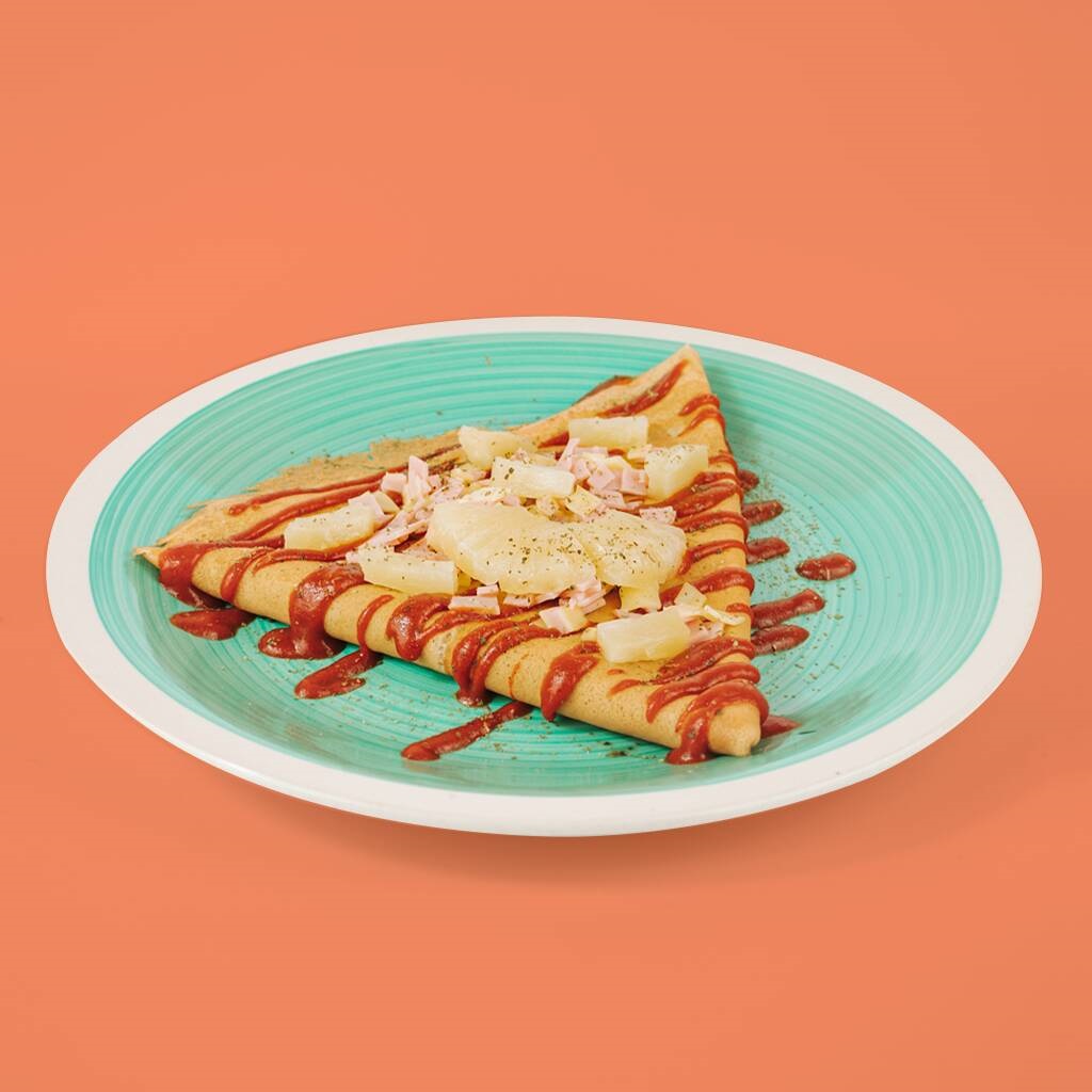 4 Hotcakes, mantequilla, 1 jalea y 2 frutas.