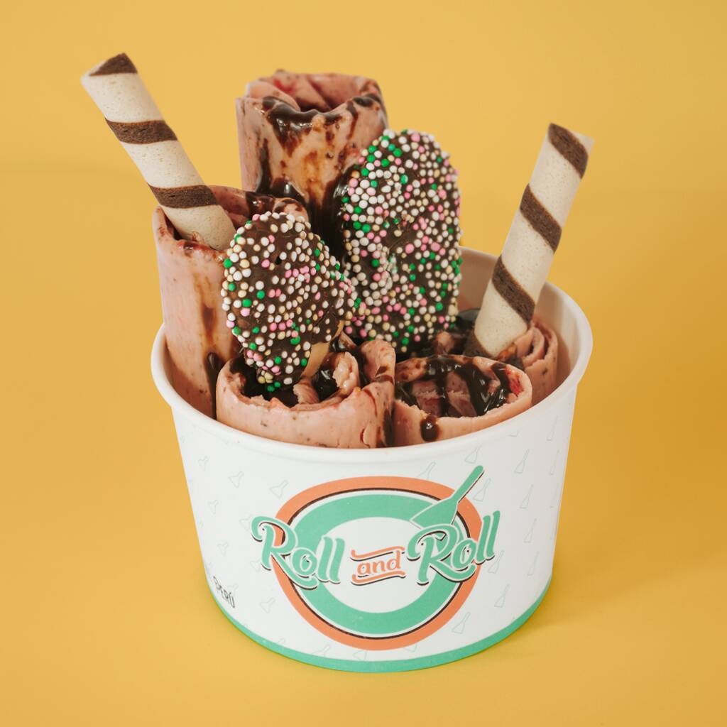 Elige 2 sabores de helado, 2 toppings y 1 jalea.