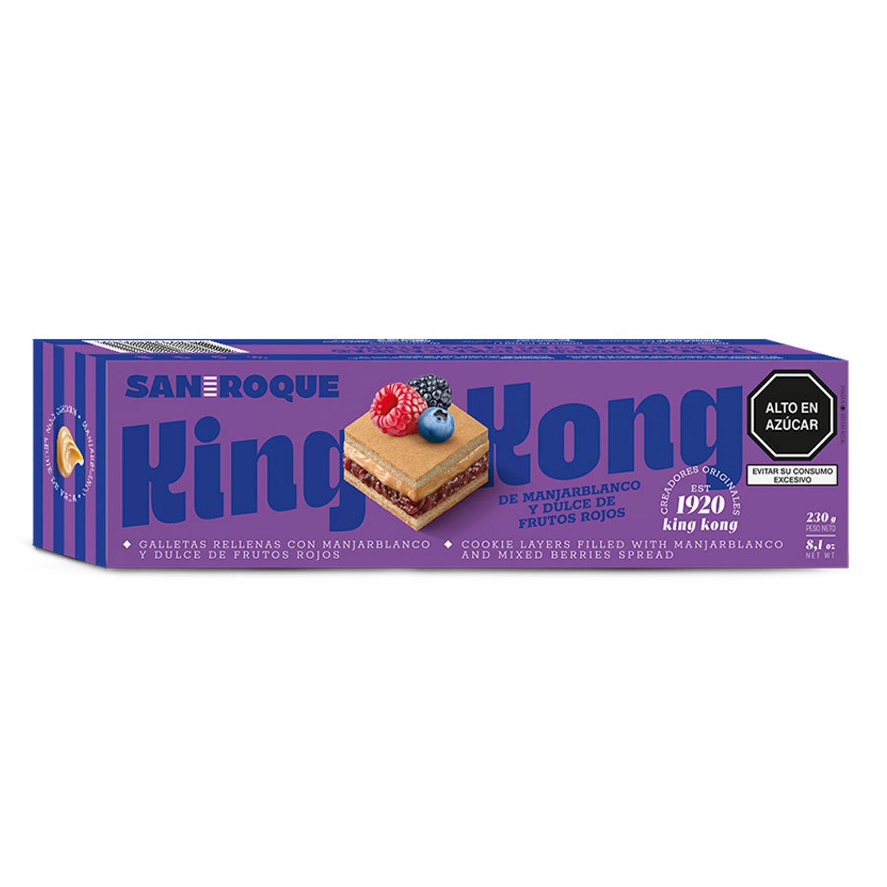 Barra de king kong de manjar blanco y frutos rojos amistad 230 g.