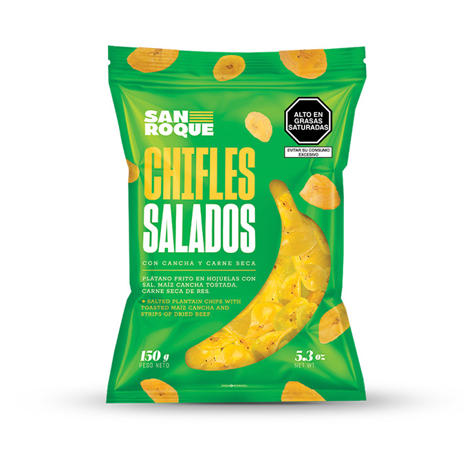 150 g De chifles salados con canchita y carne seca.