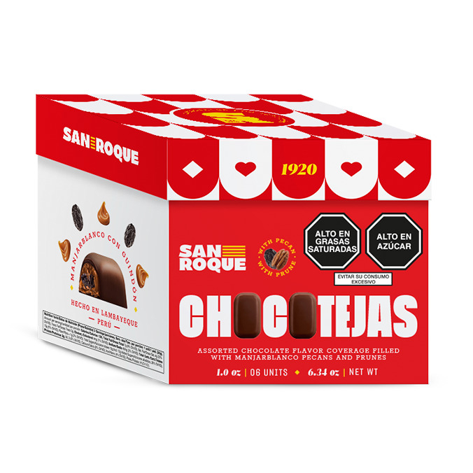 6 Unidades de chocotejas bañadas con chocolate, rellenas con guindones, pecanas y riquísimo manjar blanco.