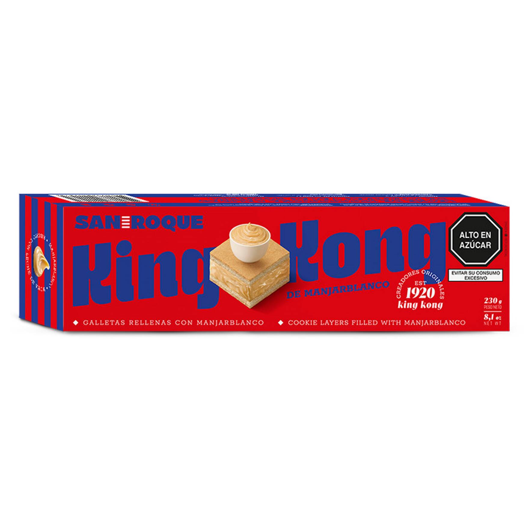 Barra de king kong de puro manjar blanco emoción 230 g.