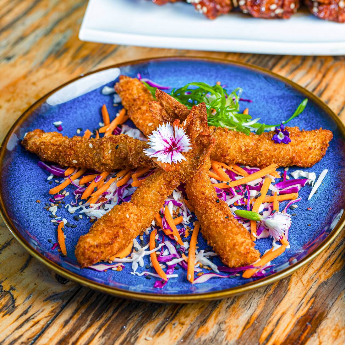 5 unidades Langostinos empanizados en panko acompañado de salsa acevichada.