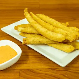 7 Unidades de pescado al panko con salsa a elección. No se permiten cambios, los adicionales tienen costo.